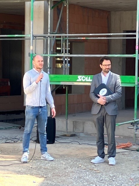 Im Anschluss übernahm der verantwortliche Architekt Severin Bast das Wort und gab einen kurzen Einblick in den bisherigen Verlauf des Projekts. Trotz einiger Herausforderungen während des Hochwassers und Starkregens im vergangenen Sommer verlaufe die Baumaßnahme insgesamt planmäßig. Die Fertigstellung sei aktuell für den Sommer 2026 vorgesehen.